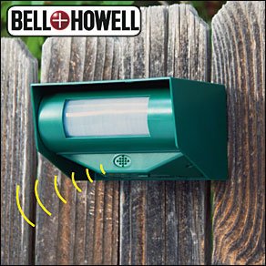 Keeps pest/critters away from garbage, lawn, or garden. When motion is detected, unit emits a high pitched sound that is inaudible to humans but pest/critters can't stand it. Returns to stand-by mode if no motion is detected after 30-60 seconds. Infrared sensor covers up to 30 ft. at a 70 degree radiusCan be used indoors or outdoorsBattery operated - Uses 4 AA Batteries (not included) - Makes it portable so it can be mounted on house, post, stake, etc. Comes with instructions.New in Box!