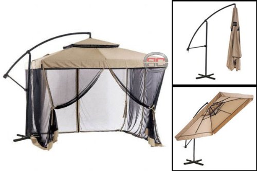 New Tan Instant Gazebo Offset Patio Umbrella W/ Mesh
