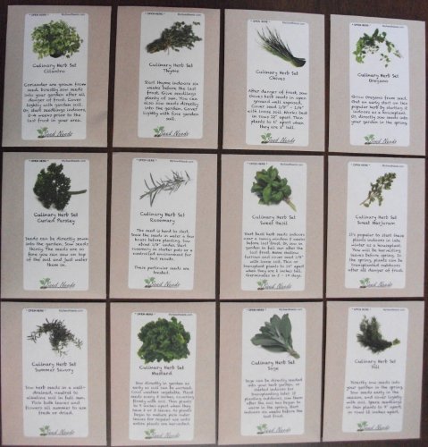 This culinary herb set includes seeds of the following species... Sage, Rosemary, Oregano, Parsley, Cilantro, Thyme, Dill, Mustard, Chives, Marjoram, Savory & Basil.